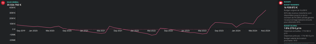 Le point finance rapide, on peut remarquer que depuis notre arriver en juin 2023 le club de porte à merveille financièrement.