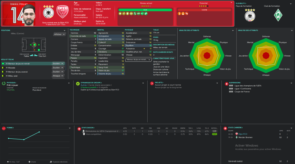 Pour finir sur le recrutement, j’ai également récupéré 2 joueurs d’aille en temps que remplaçant, formé en France pour la LDC.