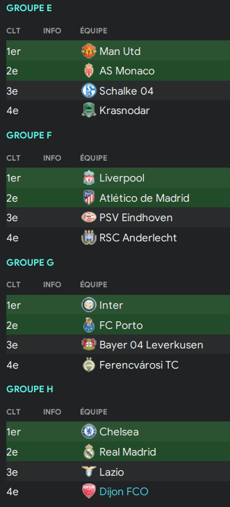 Clairement mon choix serait de tomber sur le groupe G pour l’instant, il est clair que Porto et l’inter sont 2 clubs qui nous sont bien supérieurs, mais je pense que nous aurions une chance de les surprendre.