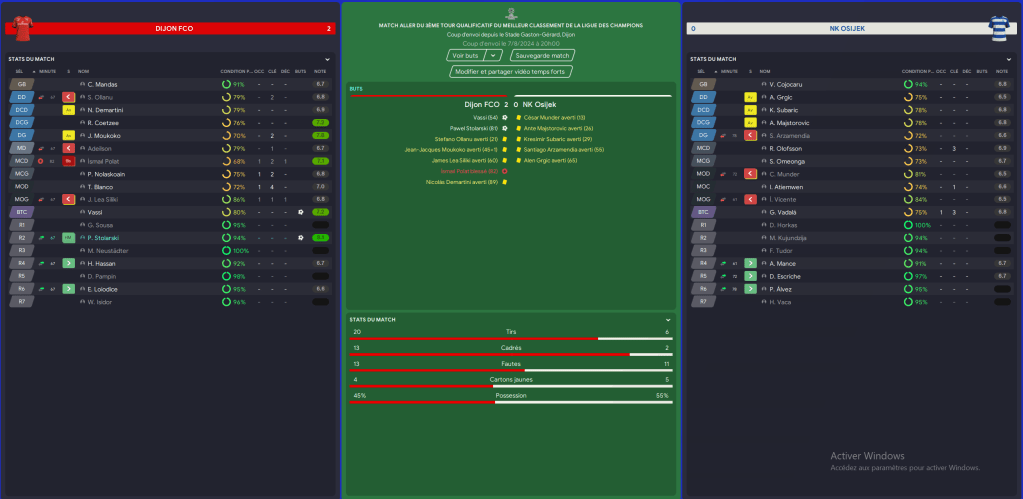 Malheureusement je ne nous vois rien faire en LDC et cette qualification cette année au final, ne sera pas pour l’exploit du passage en 1/16 ni pour jouer l’Europa.